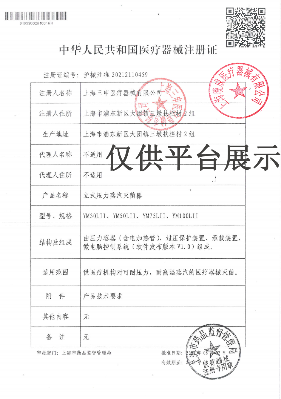 • 上海三申不锈钢立式压力蒸汽灭菌器 YM30LII