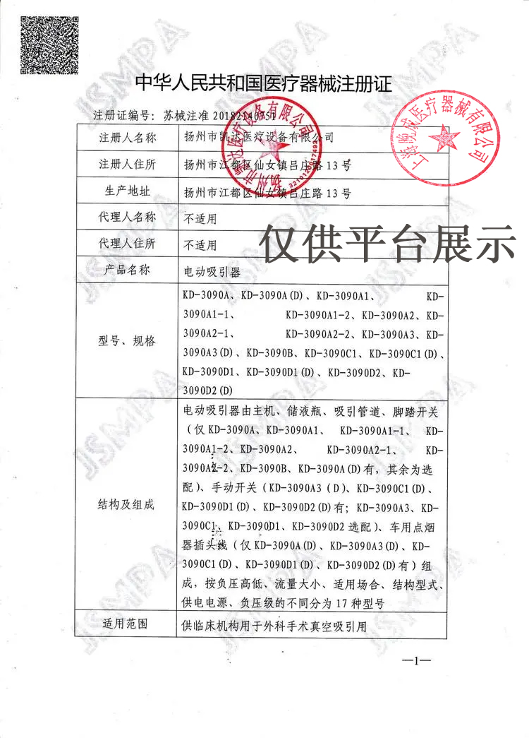 | 产品名称 : | 凯达落地式电动吸引器KD-3090A1 |