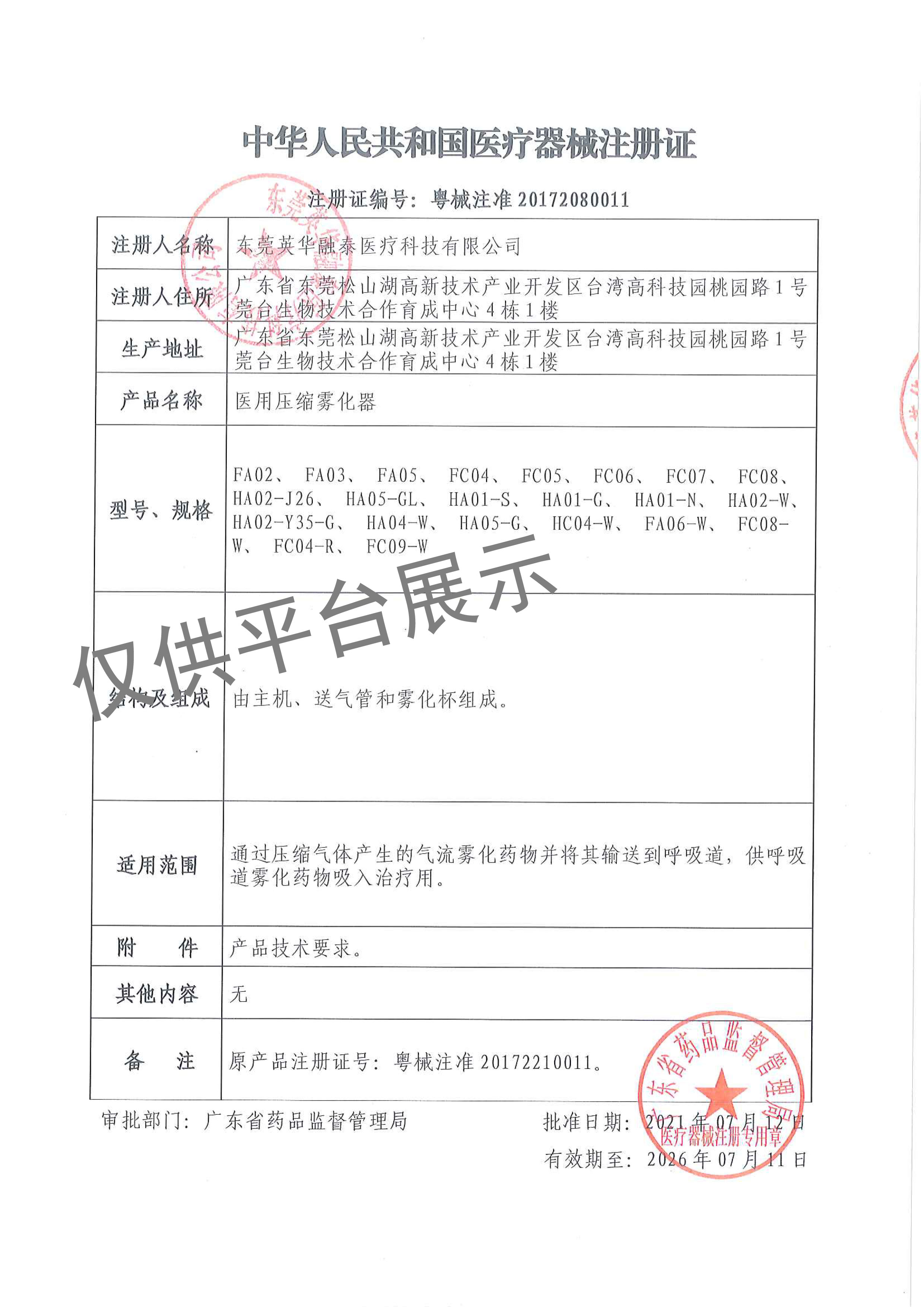 | 产品名称 : | 英华融泰小型医用雾化机HA02-W |