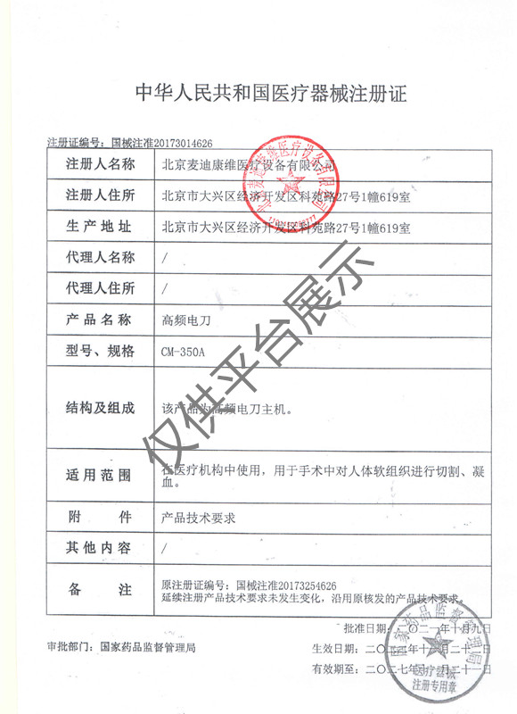 产品名称 : 麦迪康维高频电刀CM-350A 九模式