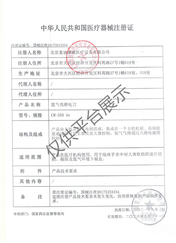 产品名称 : 麦迪康维氩气电刀CM-350Ar