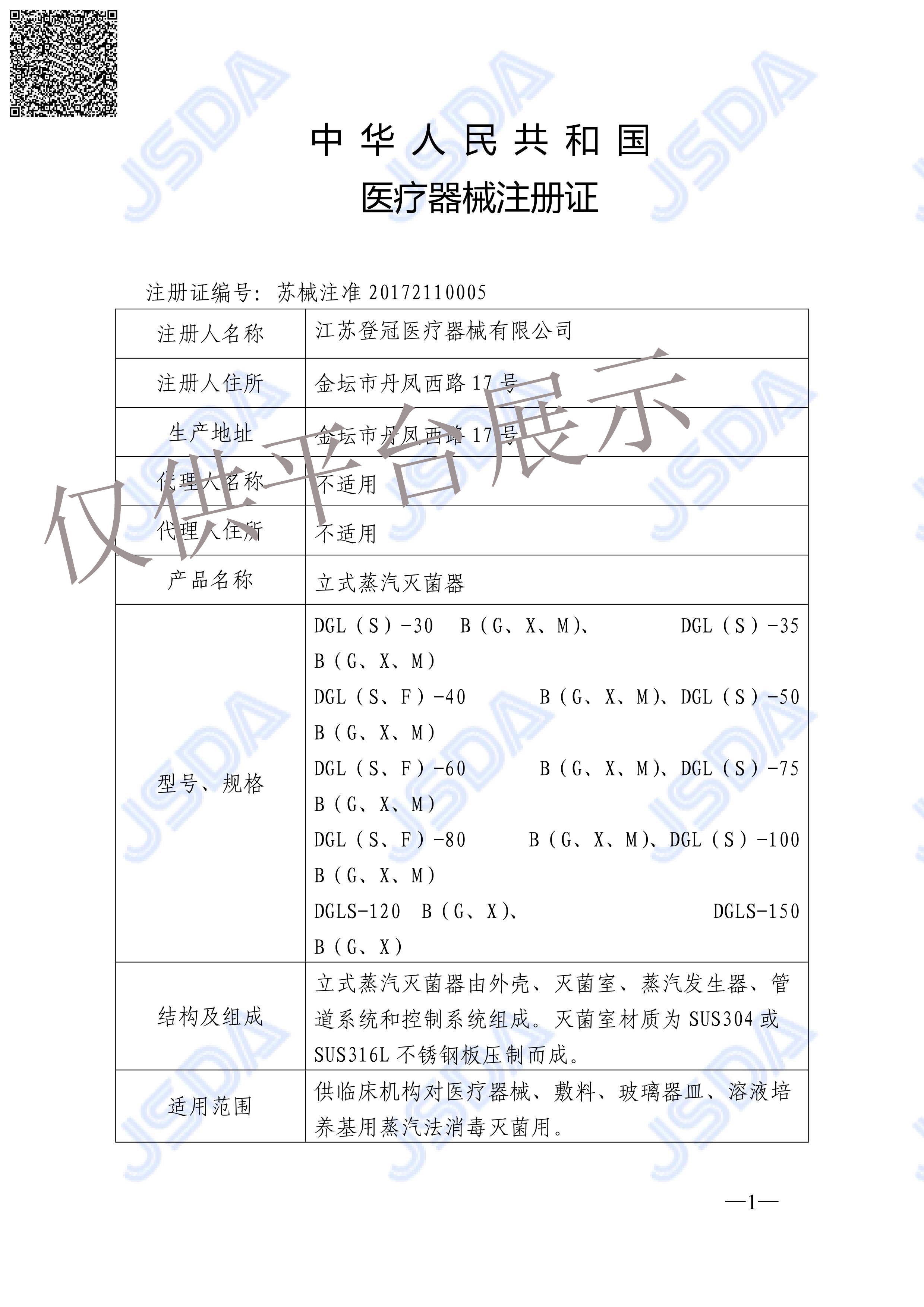 产品名称 : 登冠立式蒸汽灭菌器DGL-50B型