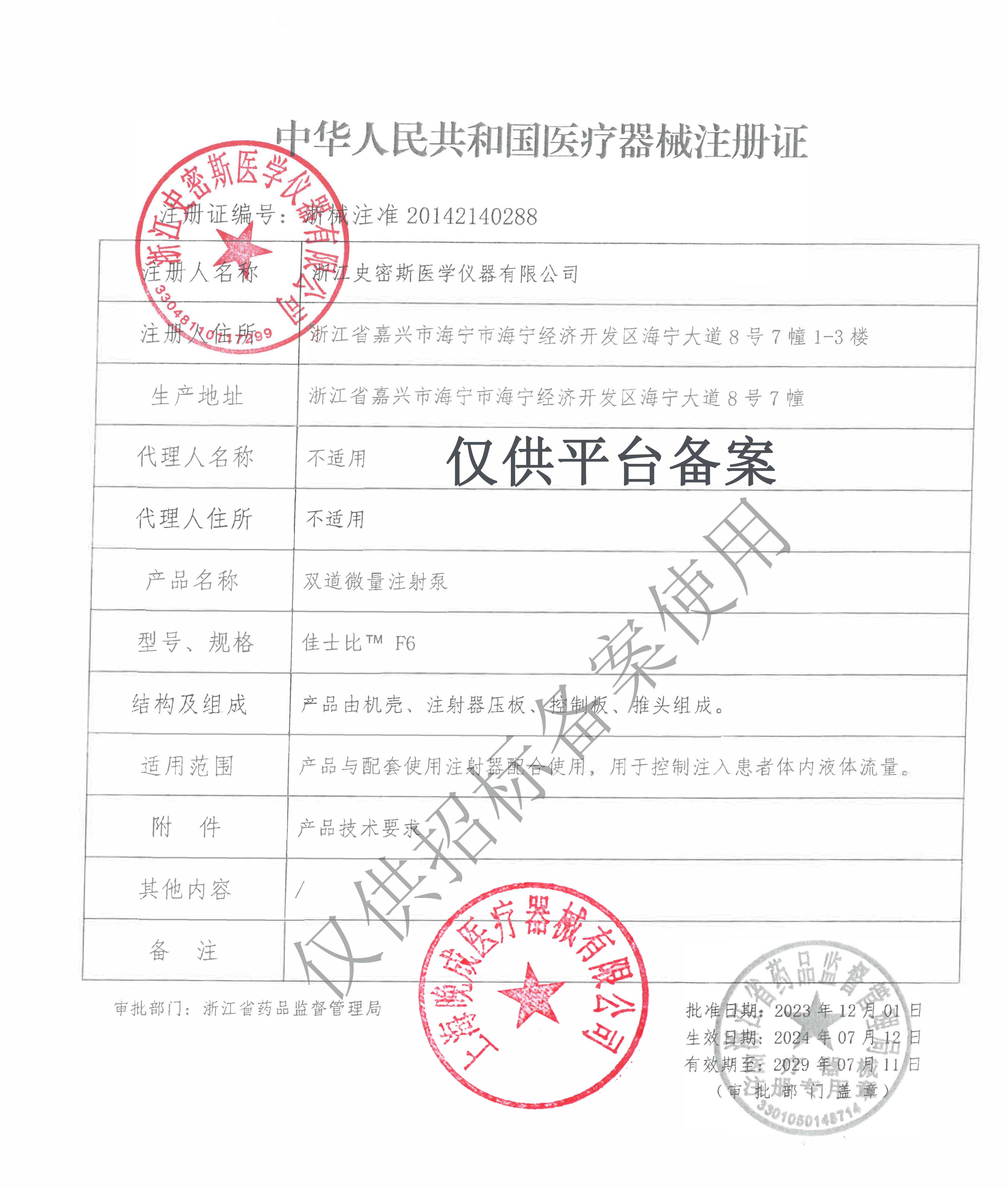 产品名称 : 史密斯佳士比双通道注射泵F6