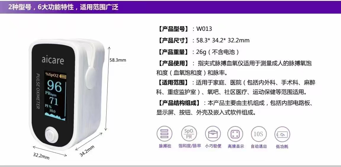 | 产品名称 : | 掌护W013型指夹式脉搏血氧仪 |