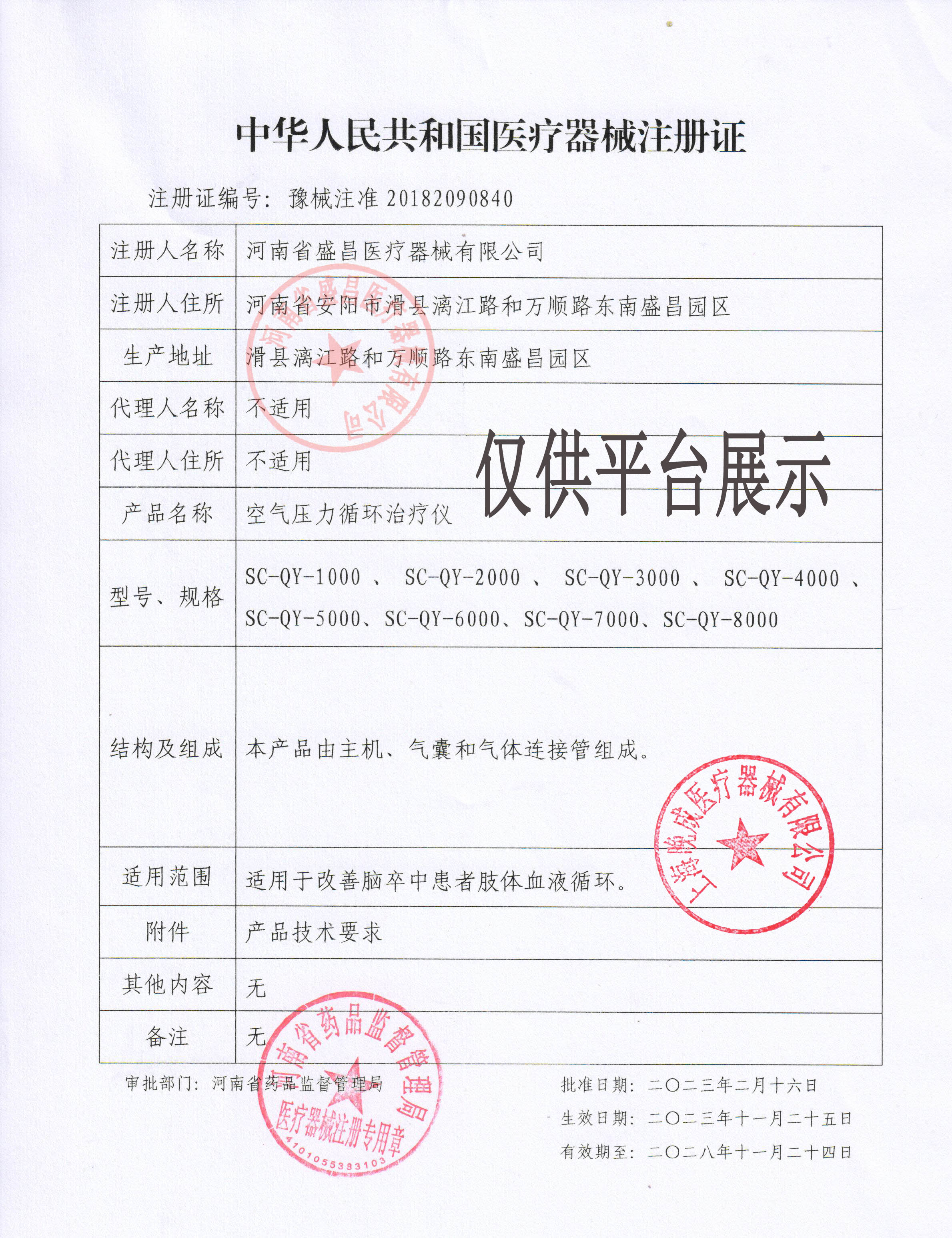 产品名称 : 盛昌 SC-QY-8000型 空气压力循环治疗仪