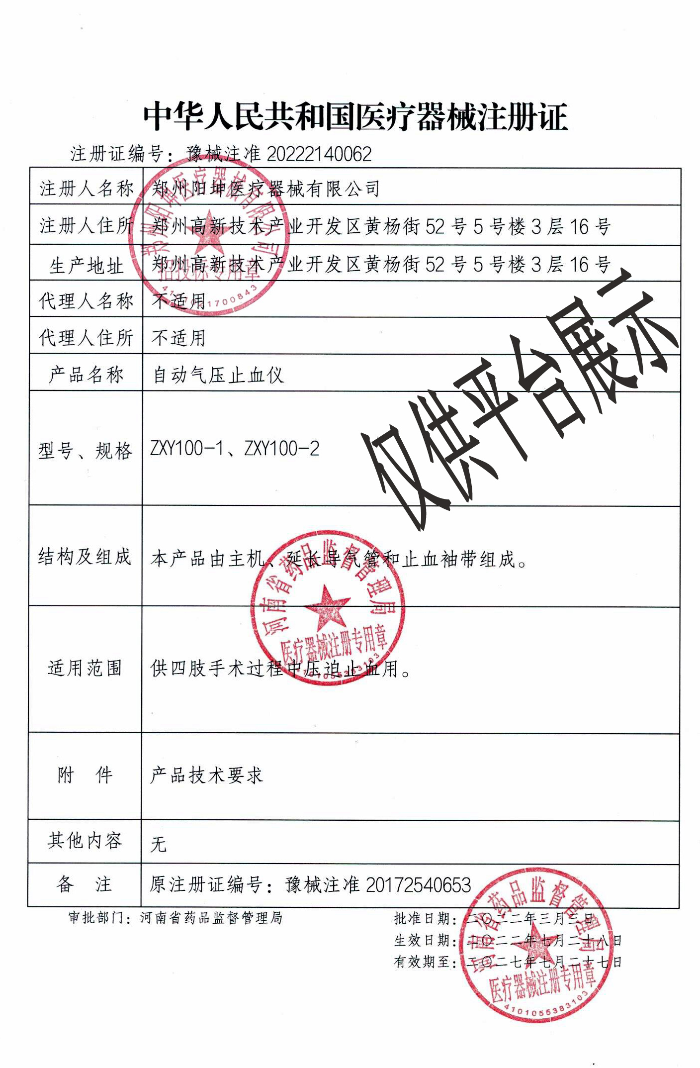 产品名称 : 阳坤ZXY100-1型单路自动气压止血仪供四肢手术过程中压迫止血