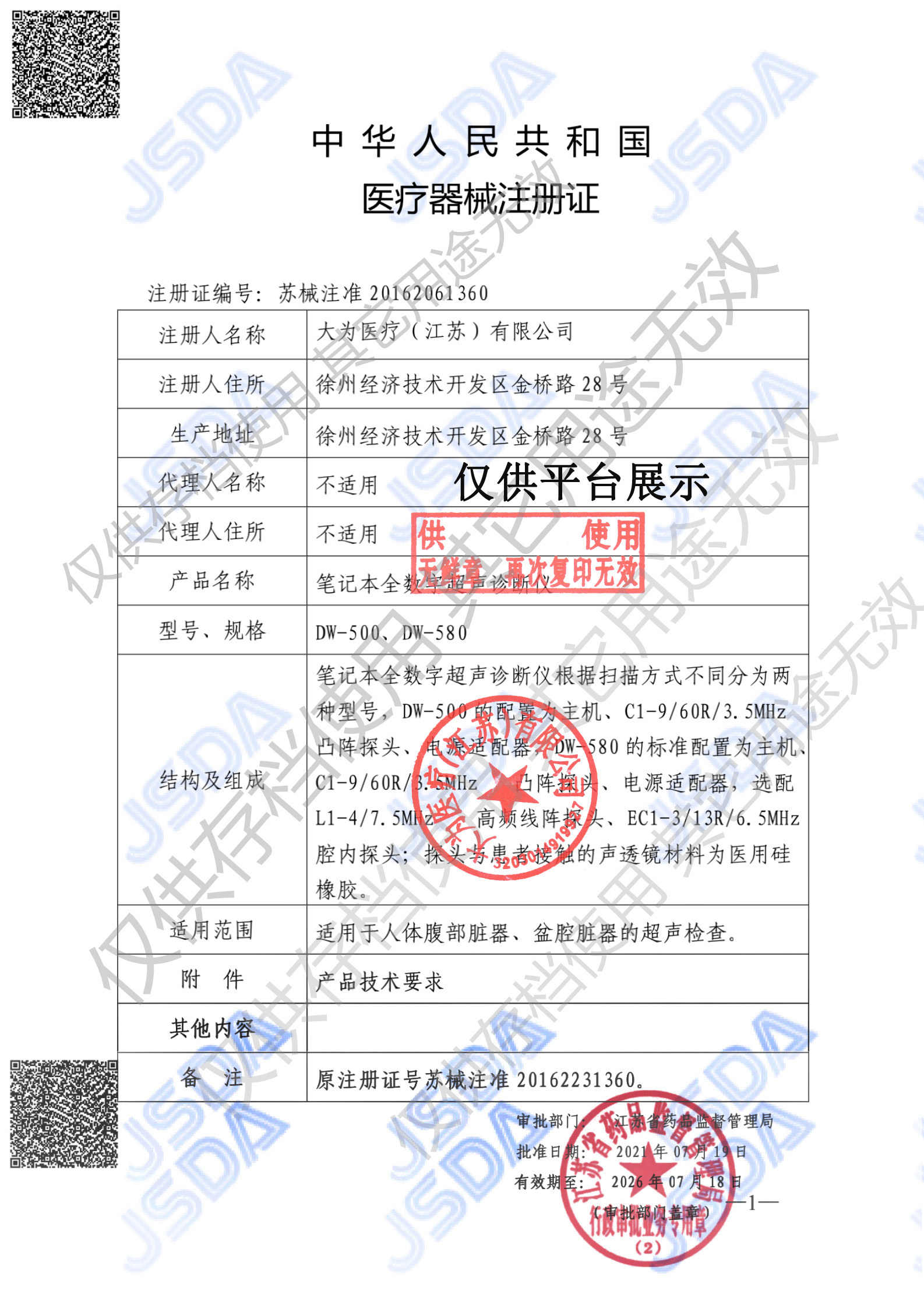 产品名称 : 大为全数字彩色多普勒超声诊断仪 DW-PF580