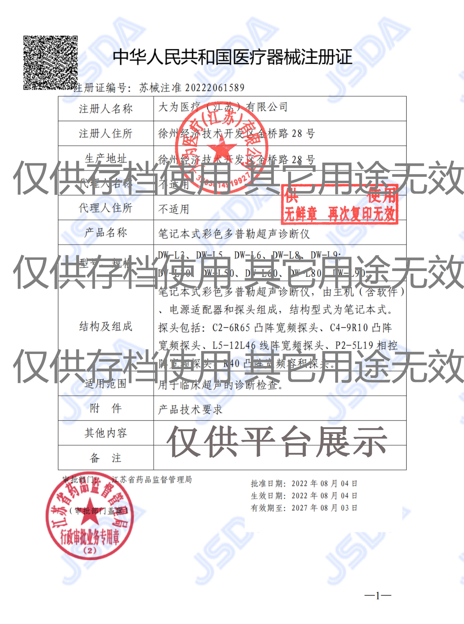 产品名称 : 大为经济型笔记本式彩色多普勒超声诊断仪DW-L3