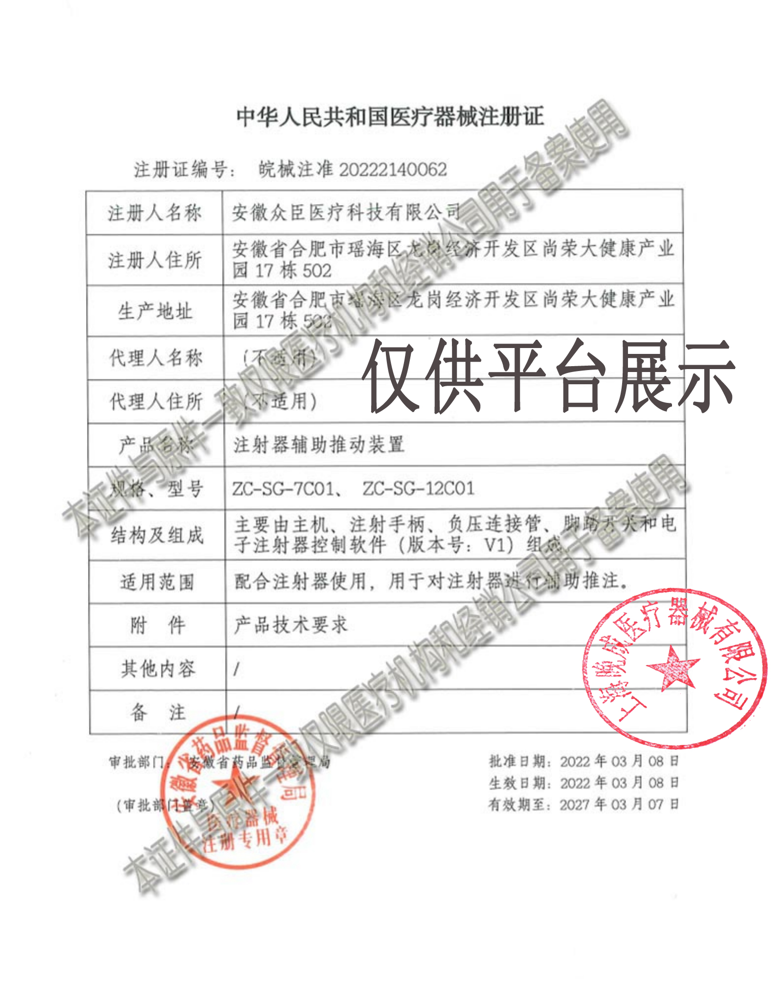 • 安徽众臣水光机7寸白金版 注射器辅助推动装置ZC-SG-7C01
