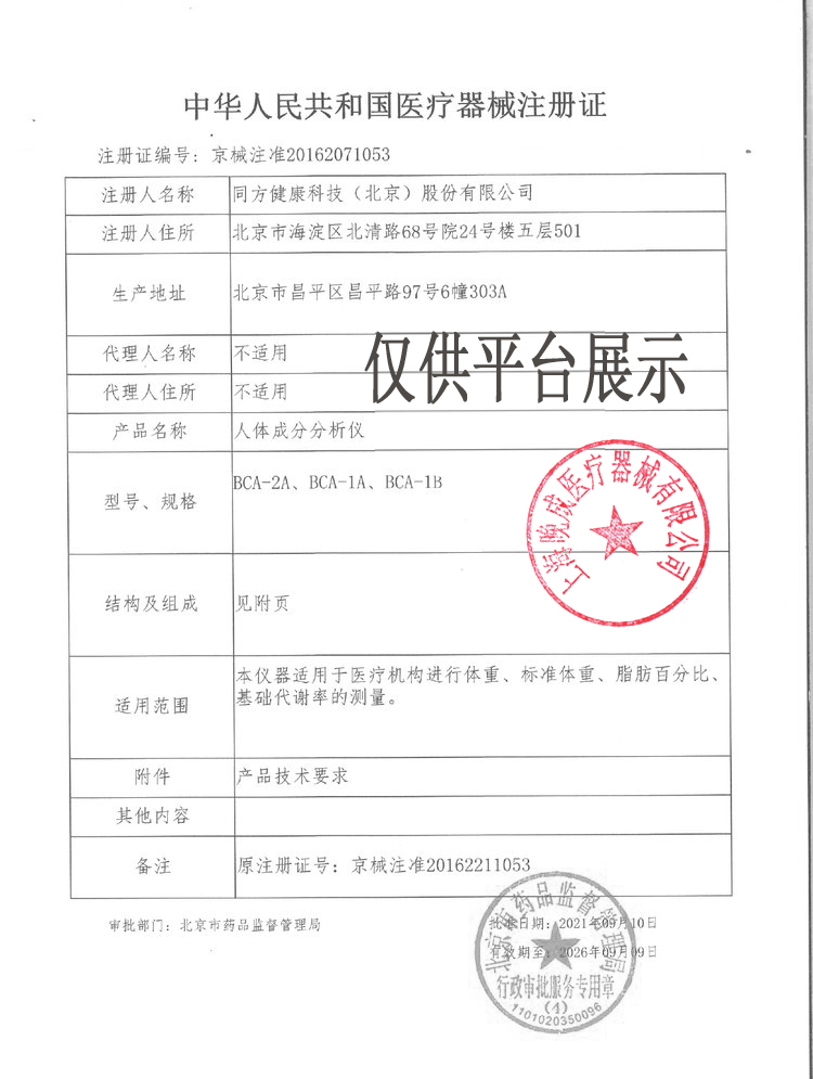 产品名称 : 清华同方BCA-1A人体成分测试仪/人体成分分析仪