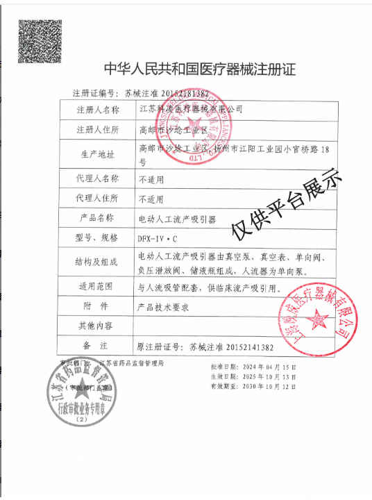 产品名称 : 科凌 Keling电动人工流产吸引器DFX-IV·C型
