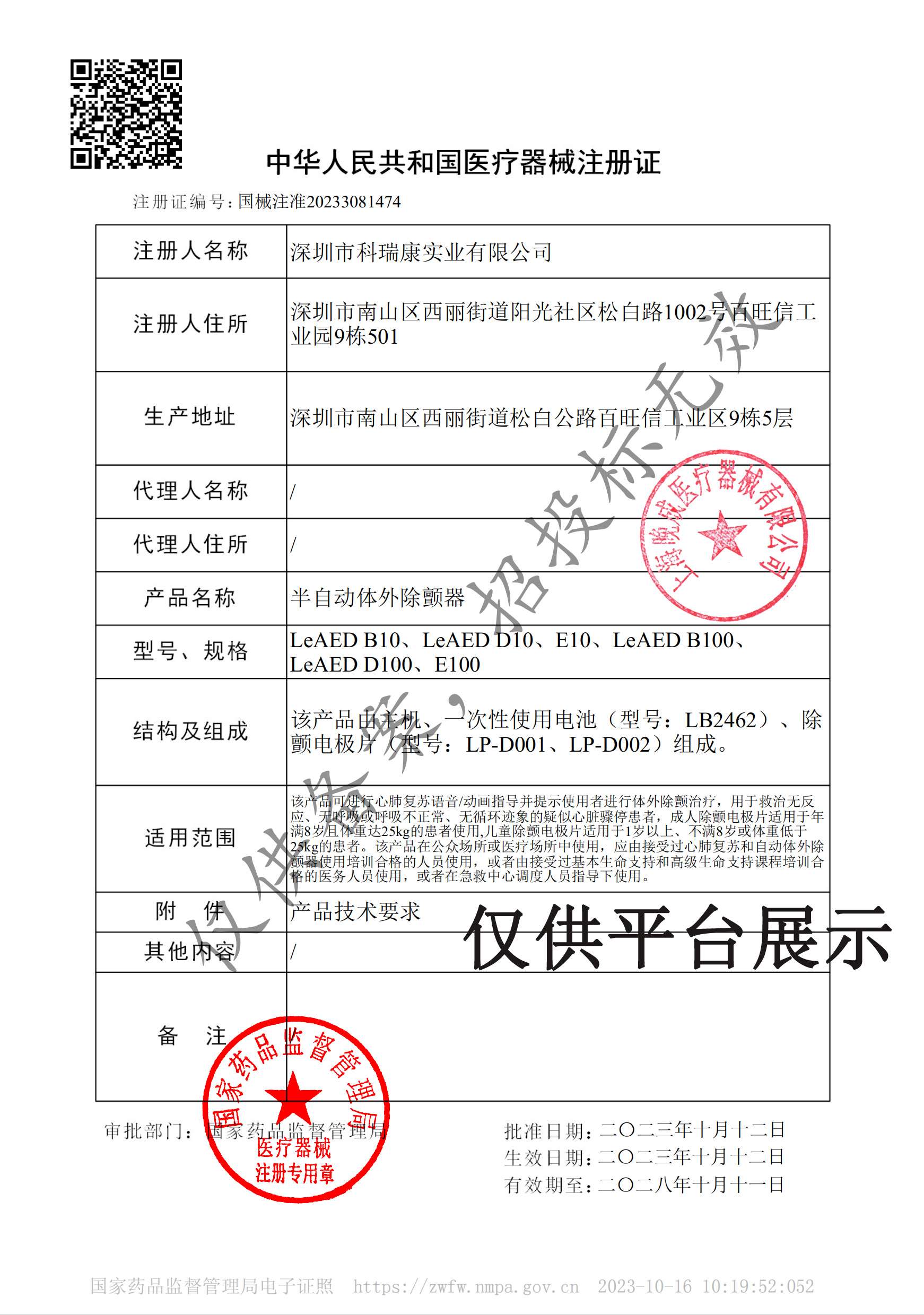 产品名称 : 乐普医疗 半自动体外除颤器LeAED D100便携带屏幕急救
