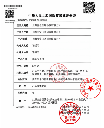 5、 具有“口腔插管”和“鼻腔插管”两种洗胃模式,可以根据地域海拔高度和洗胃管的规格选择不同的洗胃模式;